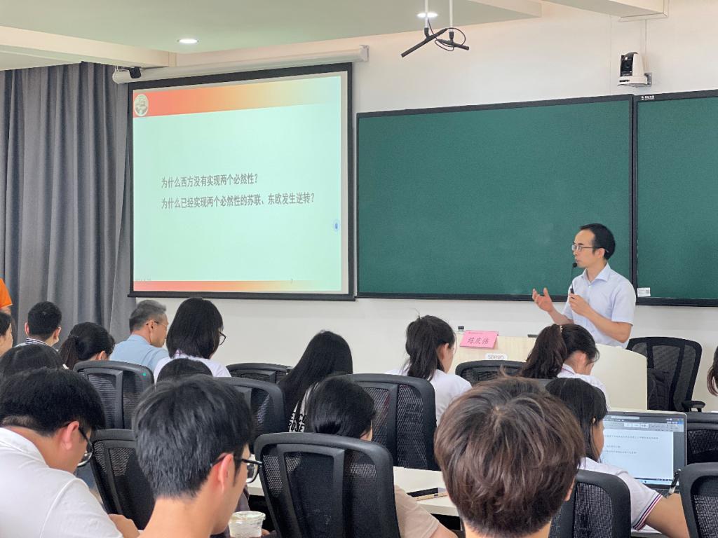 为加强思政课教师队伍建设,提升思政课教师教学水平,增进教学与科研交流,5月23日下午,william威廉中文官网邀请华南农业大学马克思主义学院教授、副院长练庆伟开展教学展示观摩示范课暨学术研讨活动。