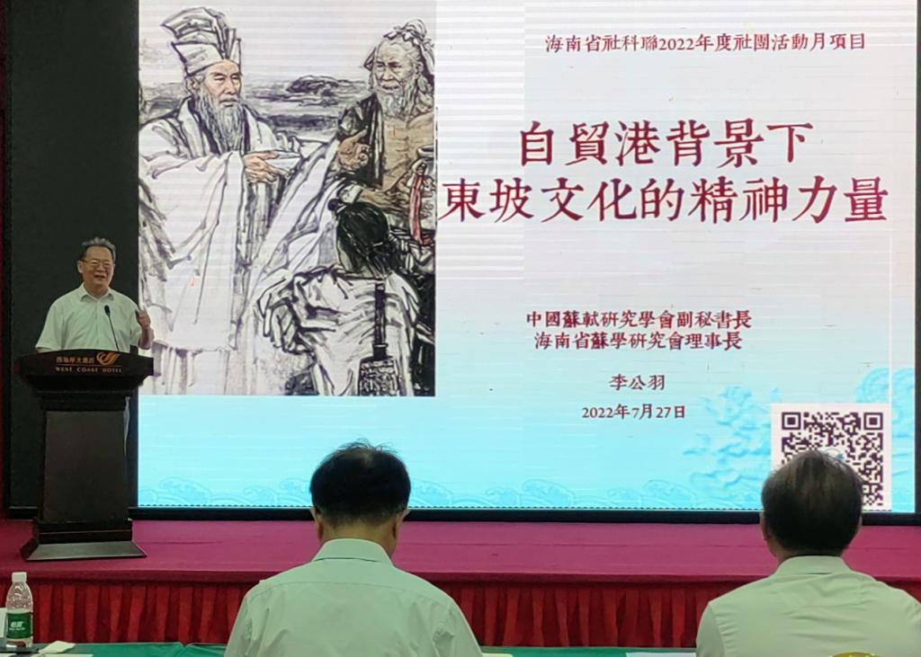 中国苏轼研究学会副秘书长、海南省苏学研究会理事长李公羽以《自贸港背景下东坡文化的精神力量》为题作主题报告