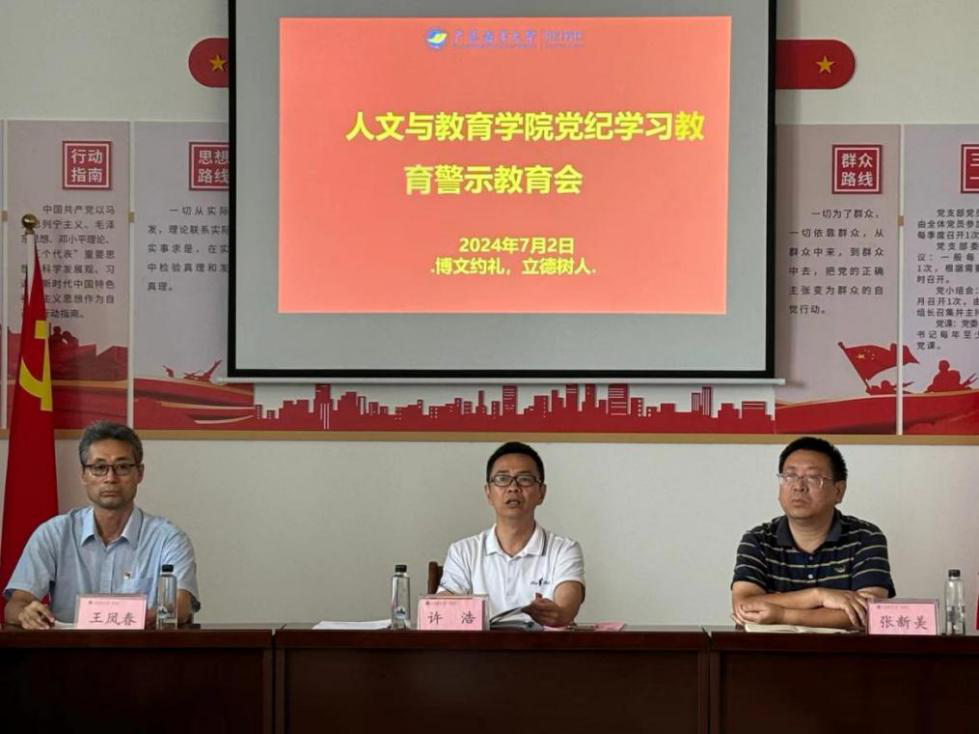 此前,7月2日下午,william威廉中文官网党纪学习教育警示教育会在海润楼召开。许浩传达了学校警示教育精神与学校第二季度意识形态会议精神,并在讲话中强调,学院干部职工要做到“四有”,有责任、有思路、有担当、有作为。把党纪学习教育当成一种政治责任,不断夯实思想基础,增强政治定力,以实际行动奋力推动学院各项工作再上新台阶。与会人员观看了警示教育视频,畅谈党纪学习教育心得,表示在深学细悟中将党纪学习教育与师德师风建设工作结合起来,切实提升学院纪律作风建设整体效能。